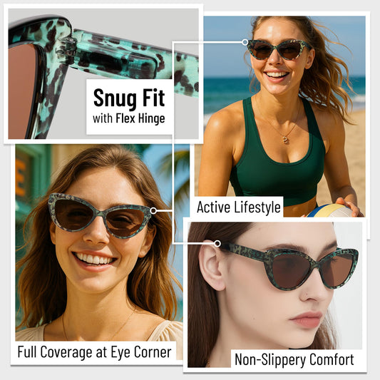 Polarized Cat Eye Sunglasses for Women – Oversized Green Cheetah Leopard Print Frame, Vintage Retro Big UV400 Shades